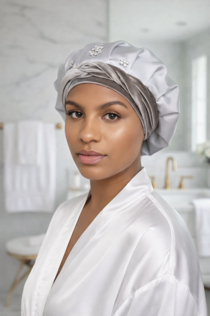 Ma coiffure je la protège avec ma couronne de douche