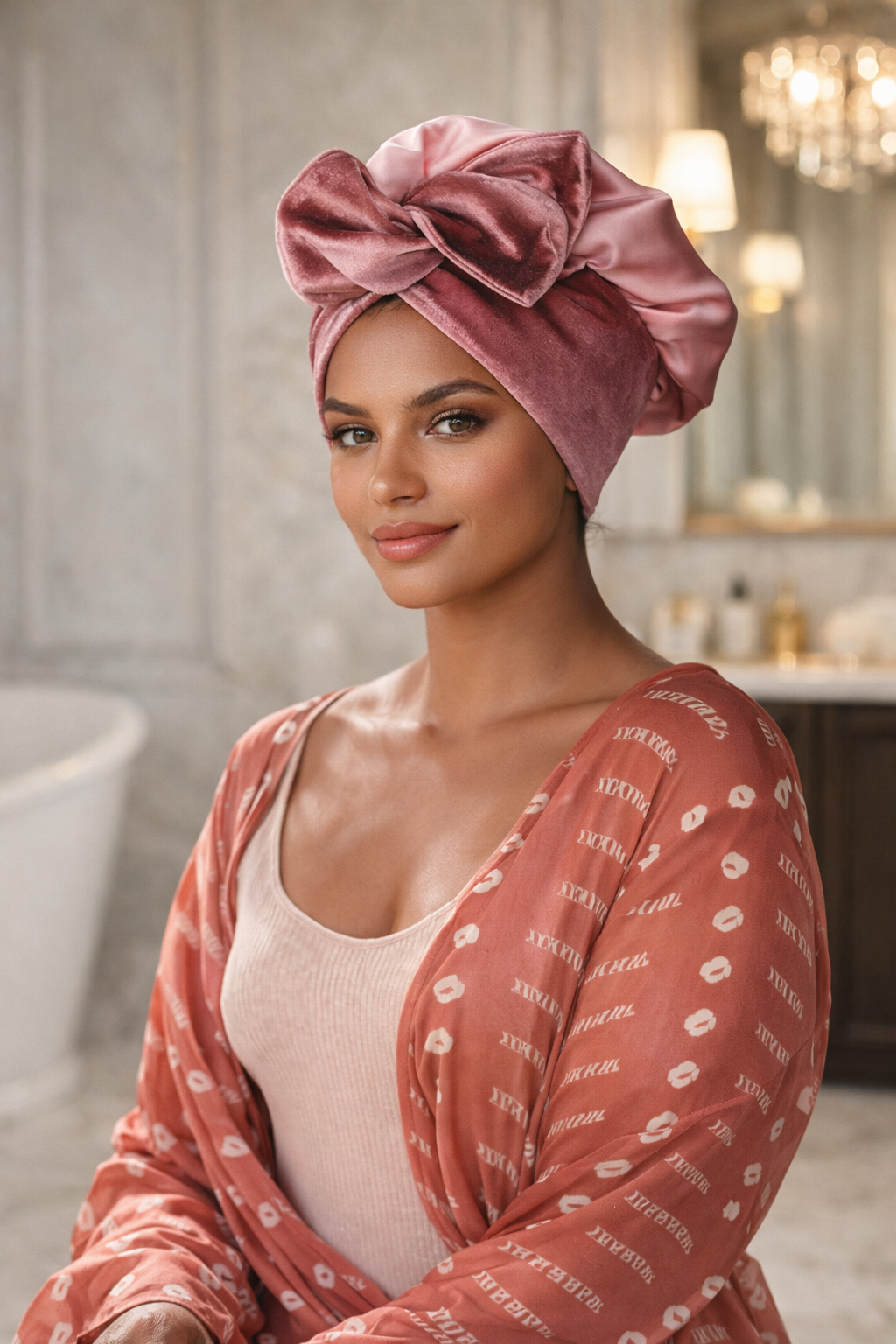 La Couronne de Douche est l’équilibre parfait entre le confort et l’élégance. Elle comprend le bonnet imperméable et le bandeau couronne.